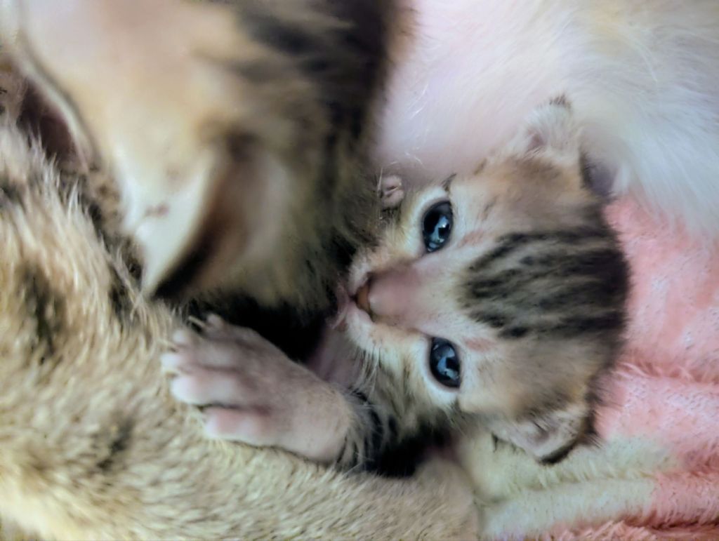 Sechem Antiope et Asteria ont fêté leur 1 mois ! Nos 2 superbes petites Mau Egyptien bronzes poussent comme des champignons, le sevrage et l’apprentissage de la propreté ont commencé. Elles viennent nous voir pour des câlins. Leur tonton Sechem Unimaginable adore passer du temps avec elle et se comporte comme un grand frère protecteur. Bon, on le soupçonne aussi d’apprécier la nourriture pour chatons…