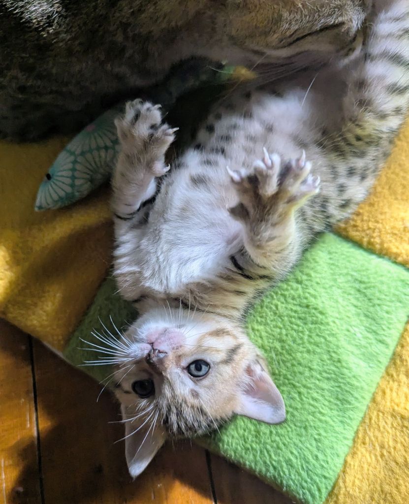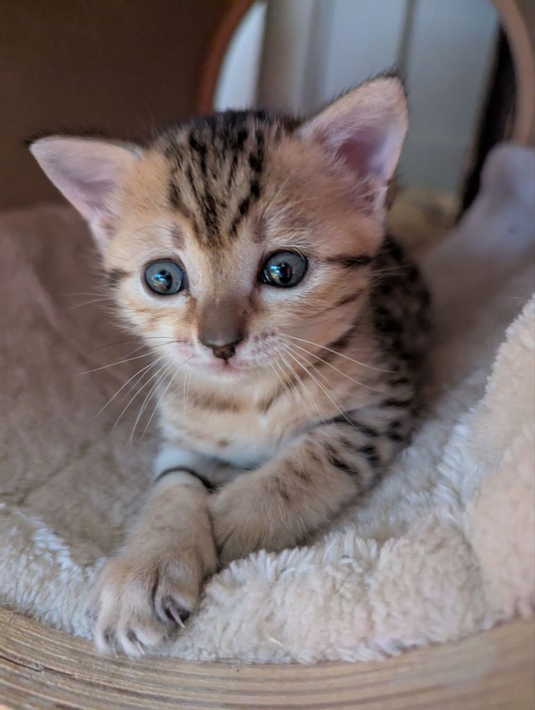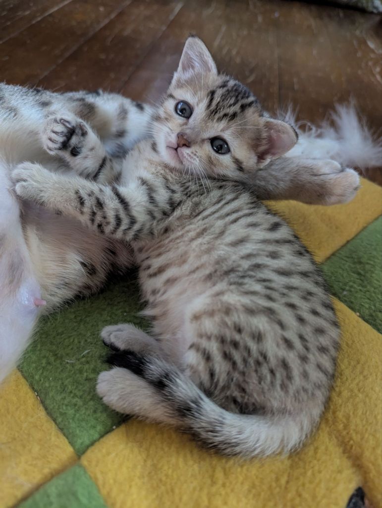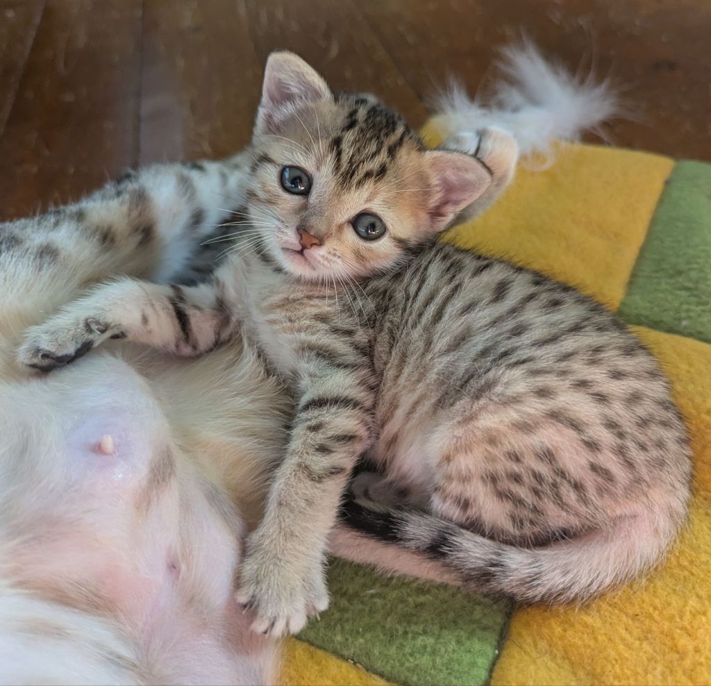 Mademoiselle Aconit se développe magnifiquement bien, elle est aussi belle que chipie, nous avons hâte de l’accueillir. De superbes petits Maus Égyptiens bronzes sont encore à la recherche de leur foyer pour la vie, n’hésitez pas à contacter la chatterie de La Triade des Loupiots, Nathalie est une amie et éleveuse de grande confiance.