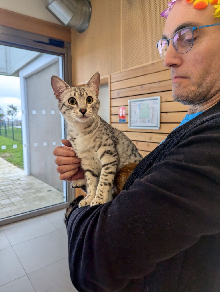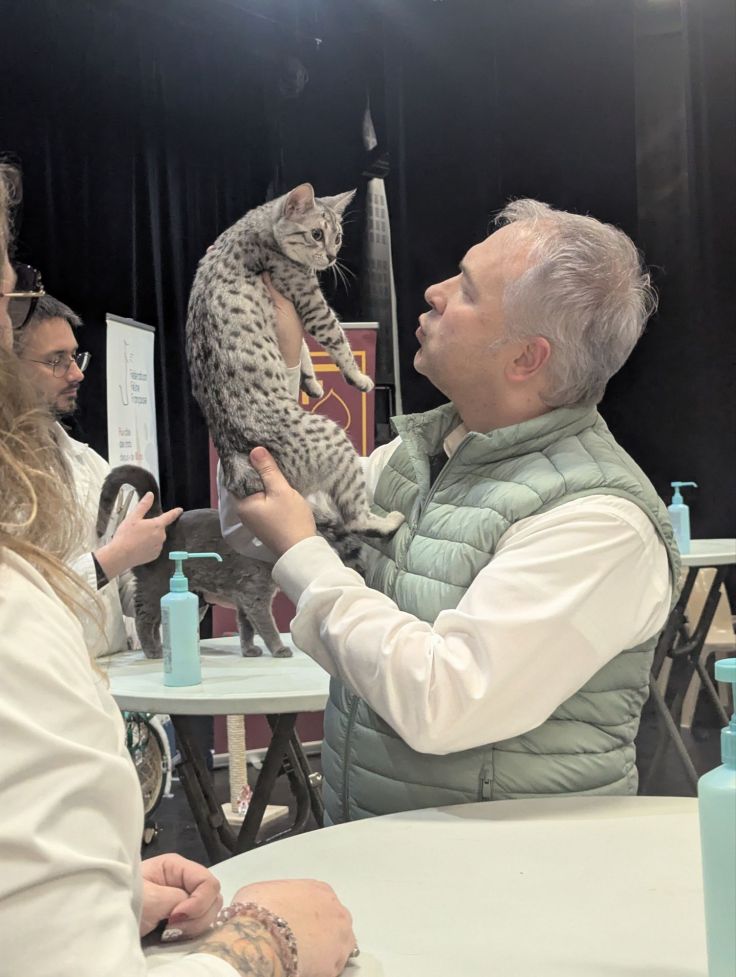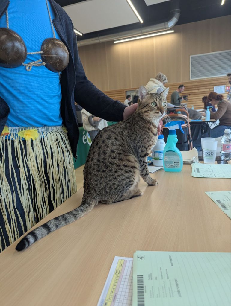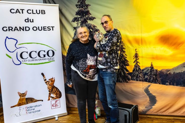 Ce week end nous étions à Saint James pour l’exposition FIFE organisée par le Cat Club du Grand Ouest dont nous faisons parti. Une exposition au top avec beaucoup de bonne humeur et d’enthousiasme où nous avons pu retrouver Marie/Fred (chatterie de la Cité des Maus) et Nathalie/JC (chatterie de La Triade Loupiots). Nous avions emmené Sechem Unimaginable (Uni) et Aconit de La Triade Loupiots qui a fait ses premiers pas en exposition. Une belle représentation du Mau Egyptien puisque 4 Maus étaient présents au total et ont été très appréciés des juges. Tous nos Maus ont obtenu leur point, Uni est devenu Premior International et a fait le Best in Show dans sa catégorie samedi, dimanche il s’est incliné face à un autre Mau Timon de la Cité des Maus. Dimanche c’est notre petite Aconit qui a charmé les juges par son élégance et a obtenu le Best in Show chaton. Tor de La Triade Loupiots n’a pas démérité puisqu’il a été également nominé au Best in Show le dimanche. Un superbe week end pour les Maus Egyptiens et leurs bipèdes !