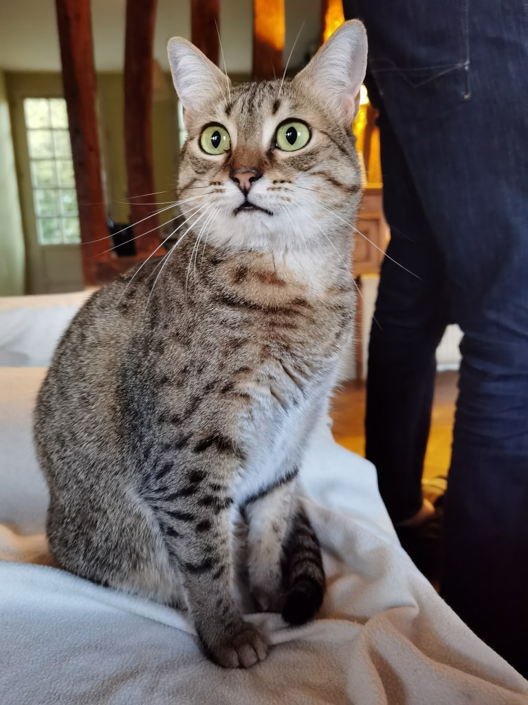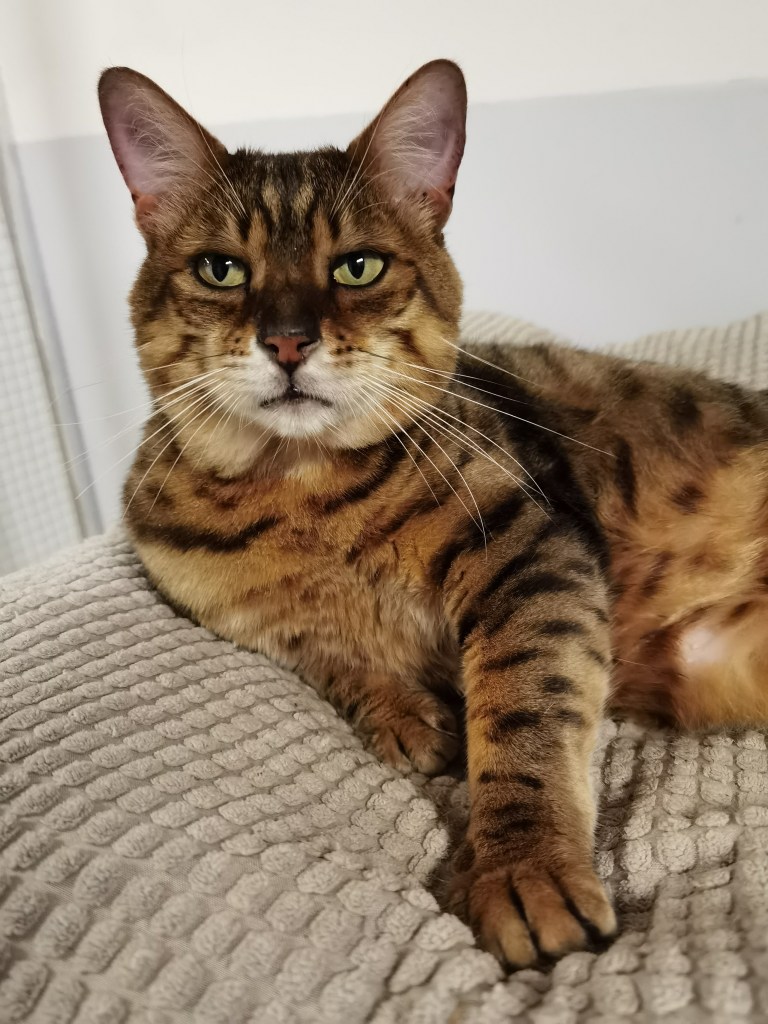 Hotep lost a bit of his jowls but not of his beauty or his colours. We did not want to deprive him of his apartment and mainly his outside run where he loves spending time in his cat tree.
