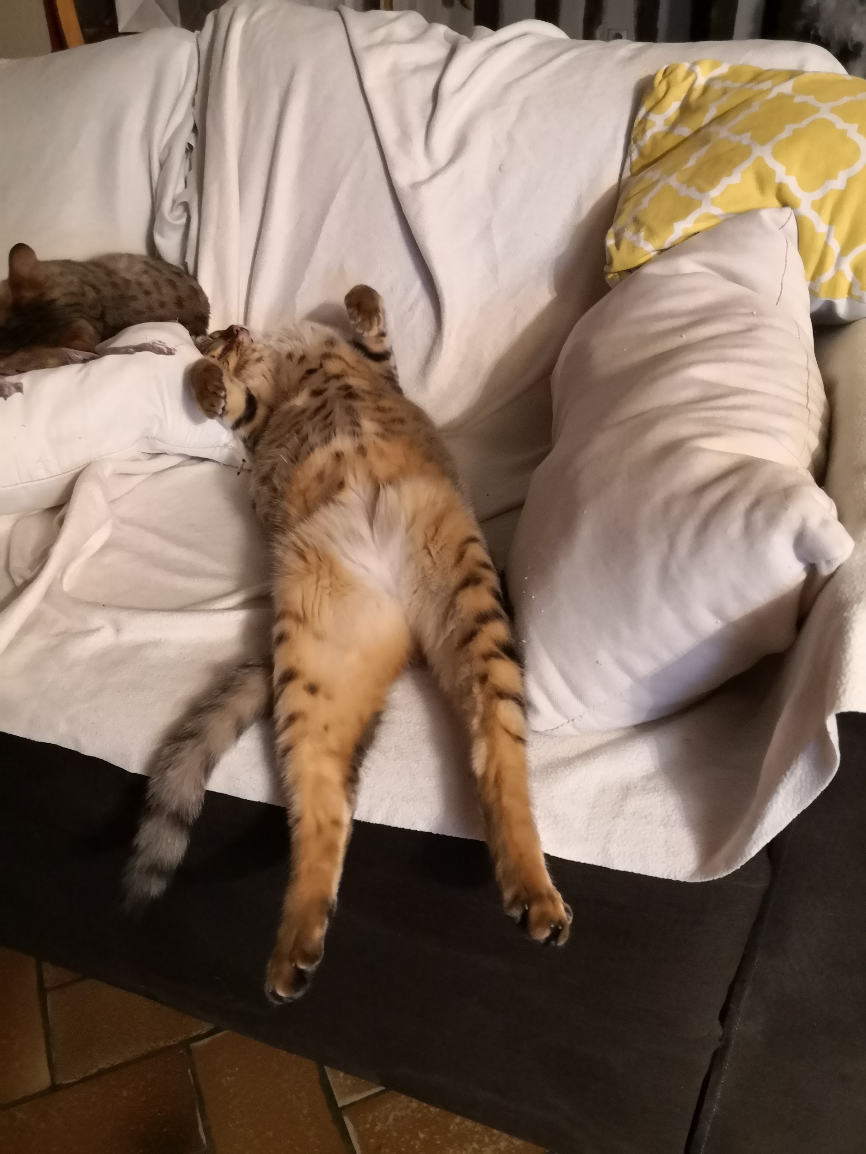 The Egyptian Mau, the pharaoh’s cat… Hum….Not always distinguished more particularly the boys. Pop-Corn and Rocky offer us a variety of funny positions when they sleep.