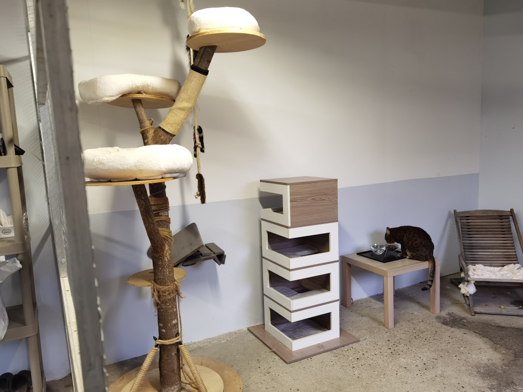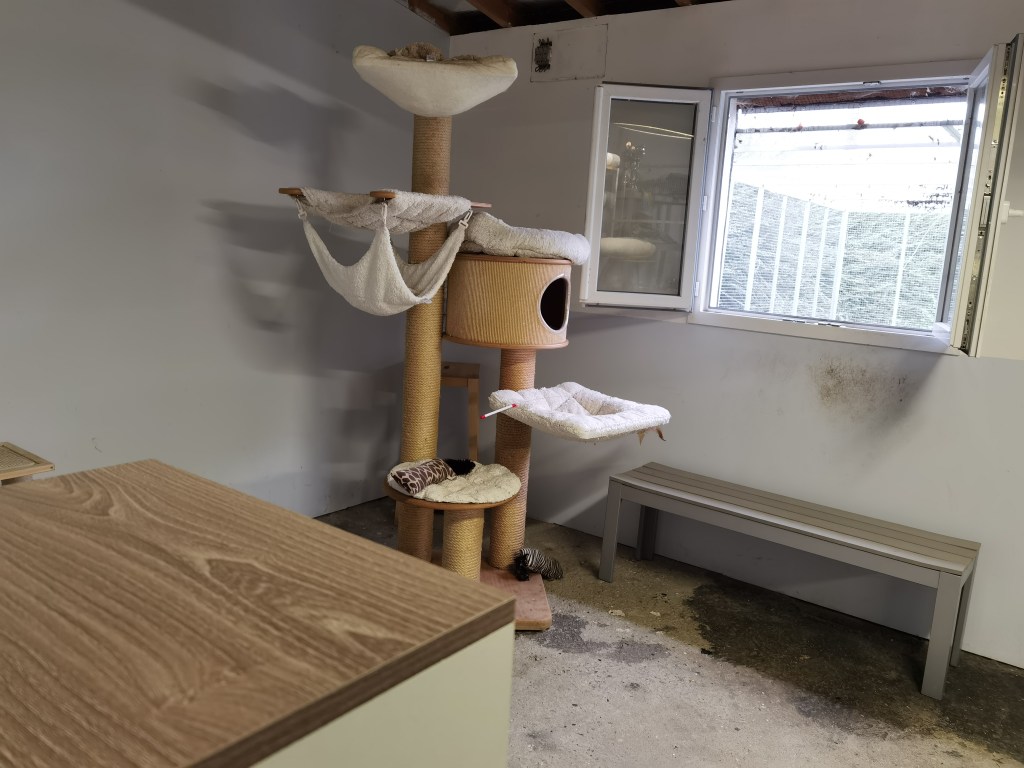 Pour permettre à notre famille féline de vivre en harmonie, nous avons réalisé des travaux au mois de Juin. Voici quelques photos de nos installations à ce jour. L’appartement 1 était déjà existant, il est occupé par notre Hotep ; la photo de son enclos extérieur a été prise en été. Ces locaux ne sont pas beaucoup occupés, en effet nous souhaitons que nos petits félins vivent en notre compagnie au maximum. Pour le moment nous avons beaucoup de chance car nos 2 jeunes mâles Pop-Corn et Rocky s’entendent à merveille et peuvent vivre à nos côtés, mais nous sommes prêts si les choses devaient changer.