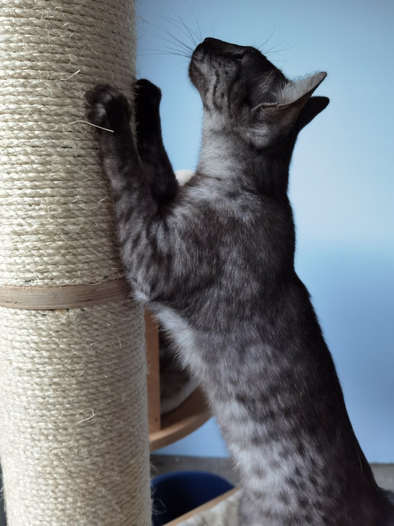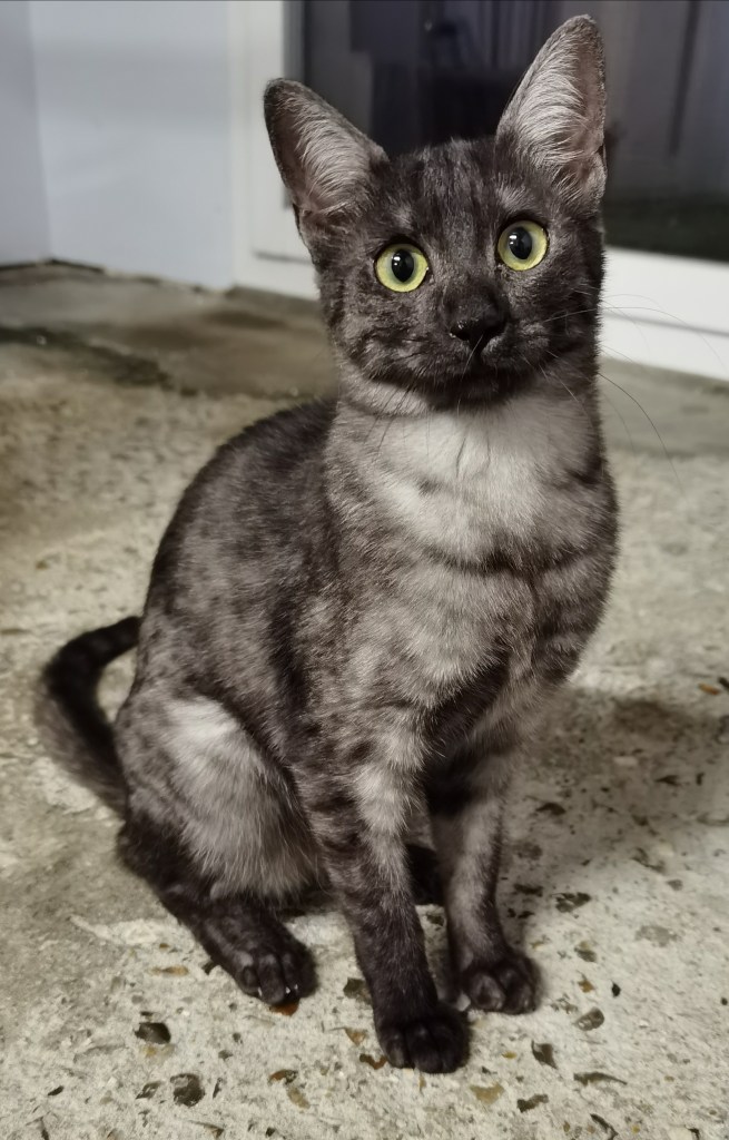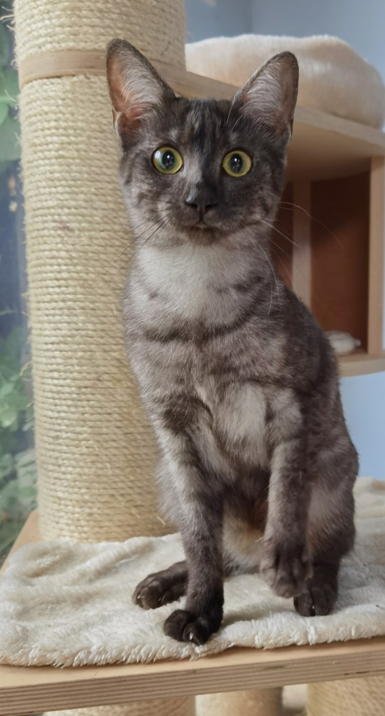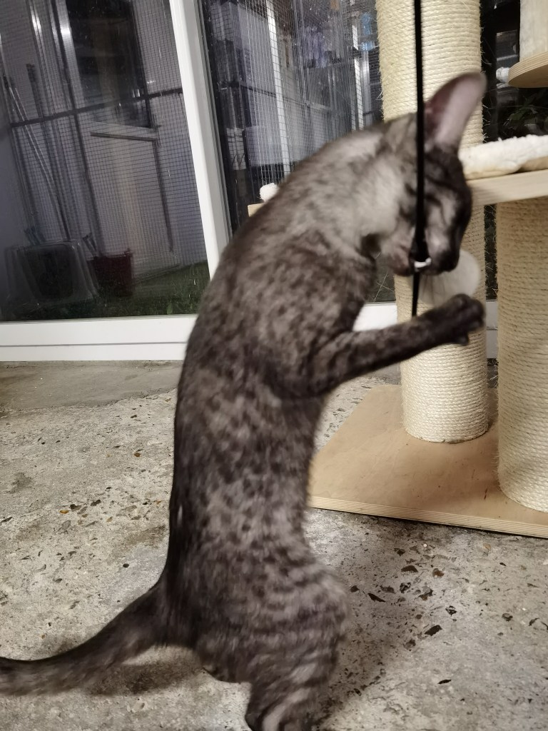 She has the name of the most famous queen of Egypt, we are very happy to introduce to you Osiris Band Cleopatra. Cleopatra comes from Belarus and was entrusted by Vera Solovieva , we would like to thank Vera for this lovely lady and also for her great professionalism.Cleopatra is smoke colour, her look, her spotting and her contrast are w, and cherry oon the cake Cleopatra has a wonderful character she is lively, affectionate and so sociable.Cleopatra’s integration is doing well, her arrival will allow introducing new gene pool for bronze Egyptian Mau at the Sechem cattery. Welcome to our new little queen !