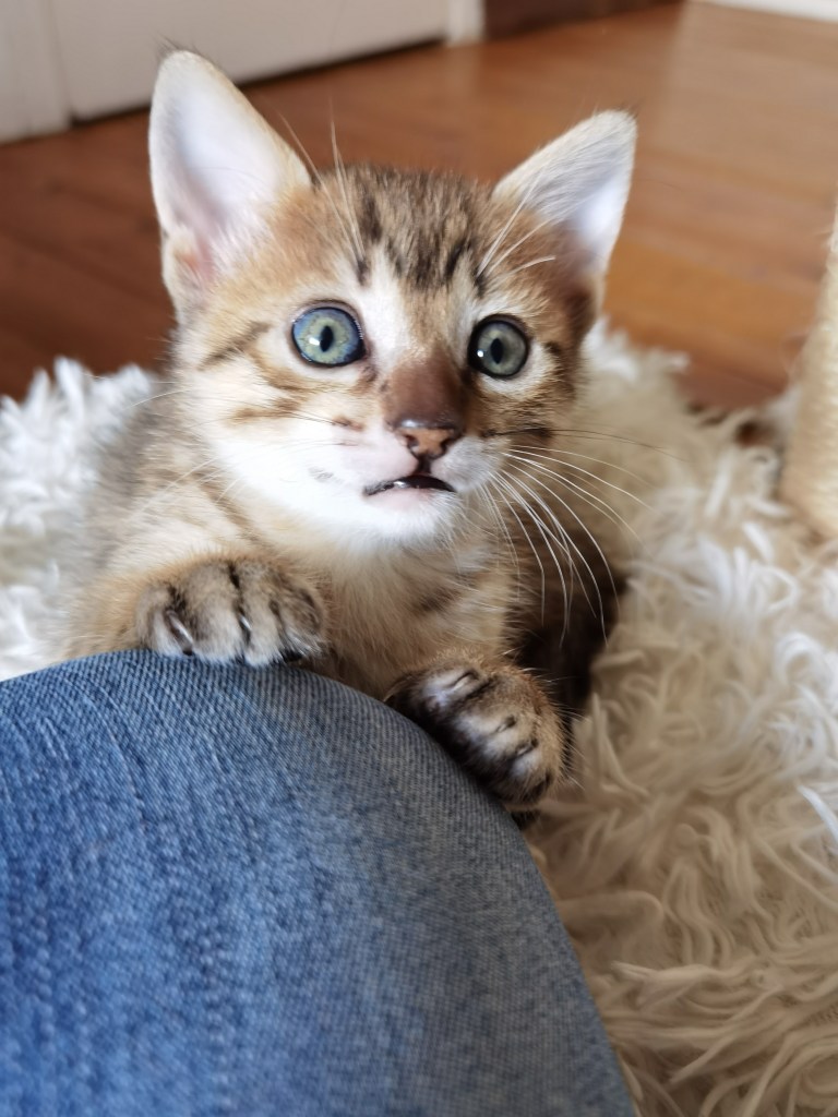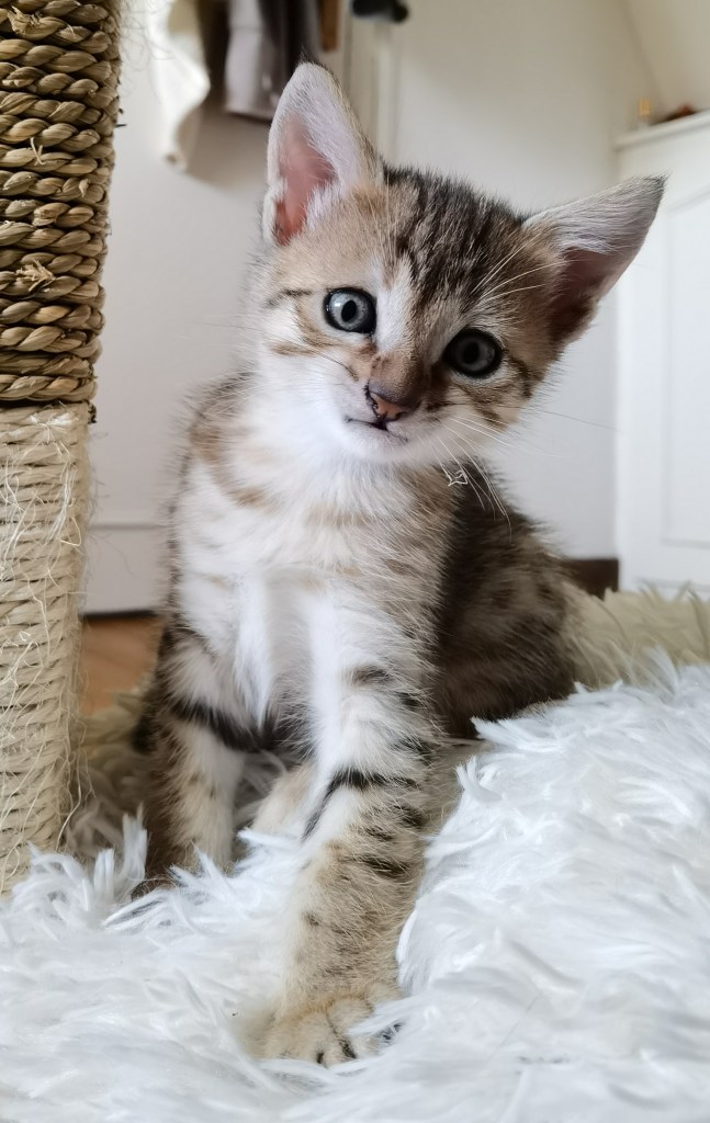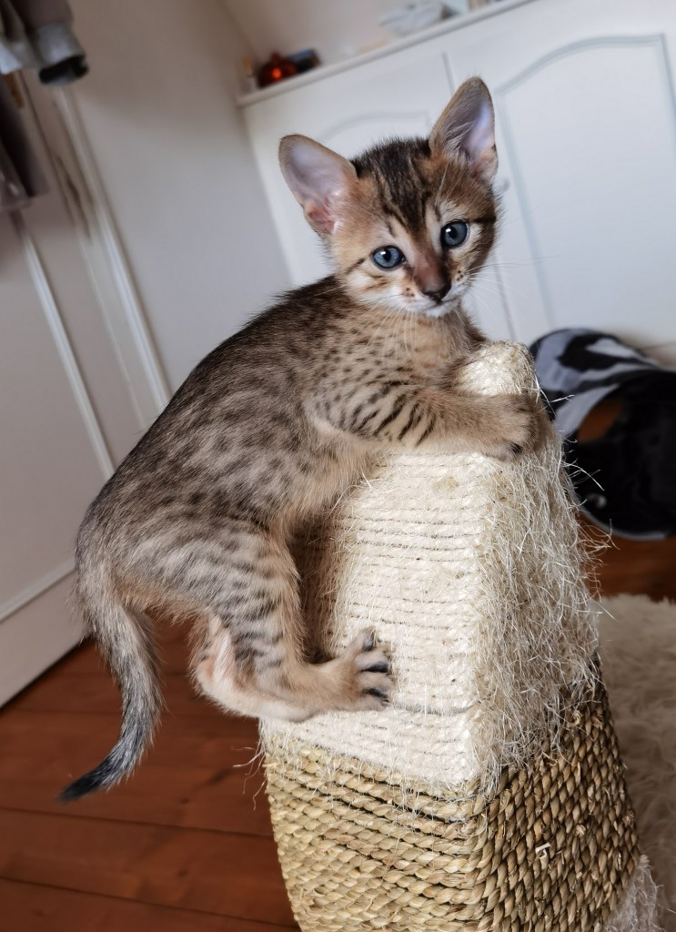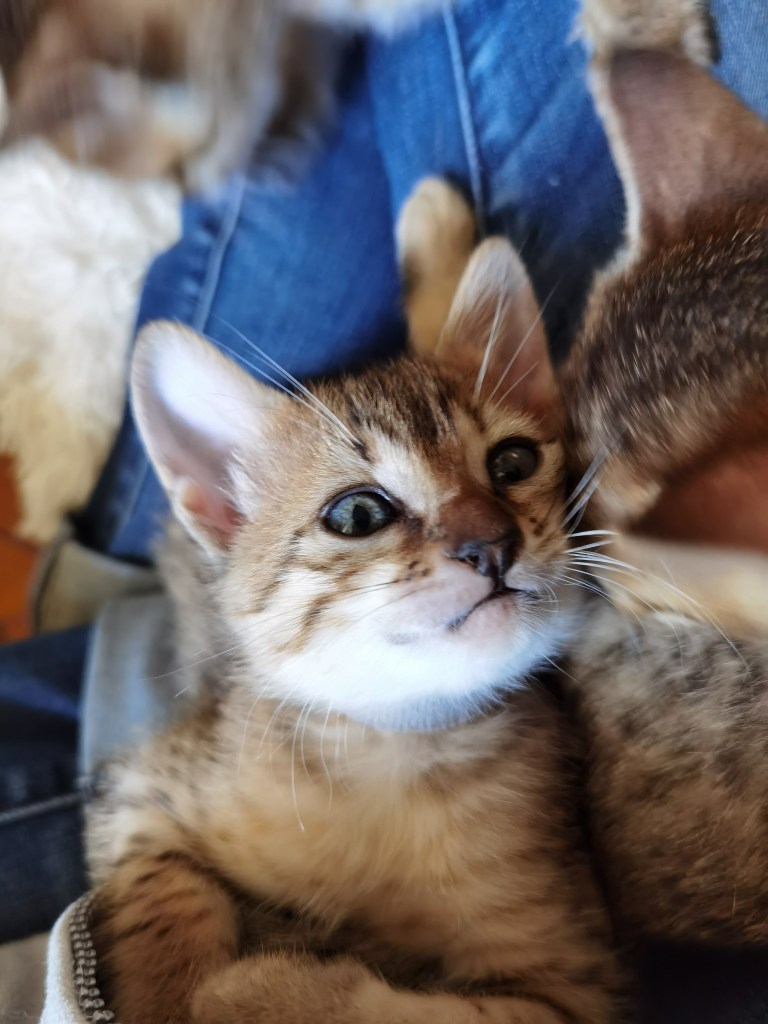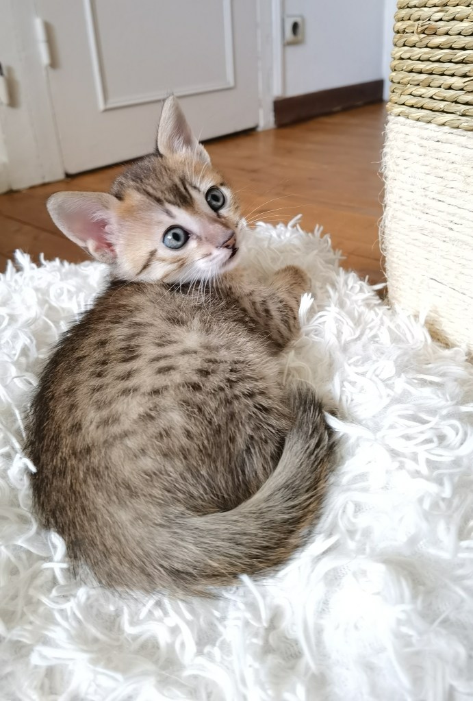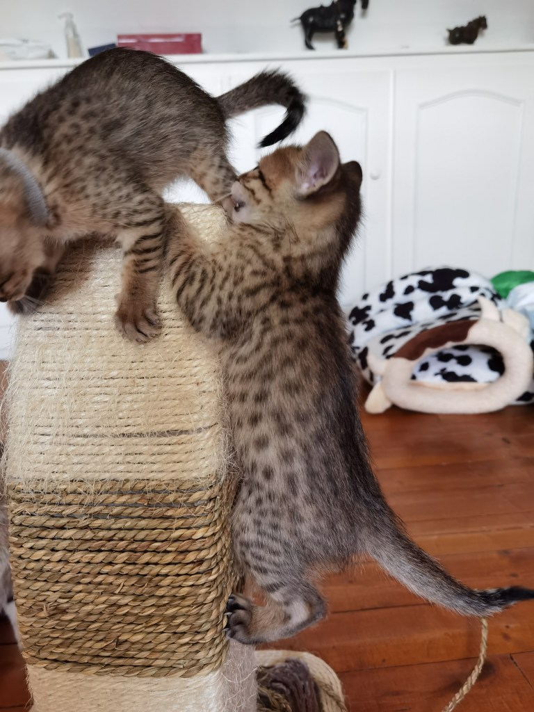 Nos 4 Fantastiques ont à présent 5.5 semaines, ils sont plein de vie et adorables et leurs caractères commencent à s’affirmer. La plus curieuse et téméraire porte le collier bleu, toujours suivie de près par sa sœur collier gris dont l’une des grandes particularités est d’être très gourmande. La dernière petite merveille semble être d’un caractère plus doux et plus réservé, elle est absolument craquante elle aussi. Et en ce qui concerne le seul garçon de la portée, il se révèle être un vrai charmeur, petit gentleman il laisse toujours ses sœurs gagner les bagarres.