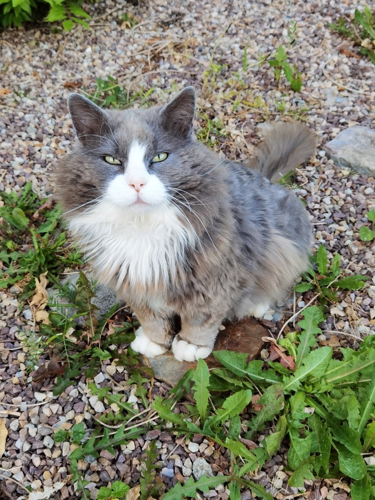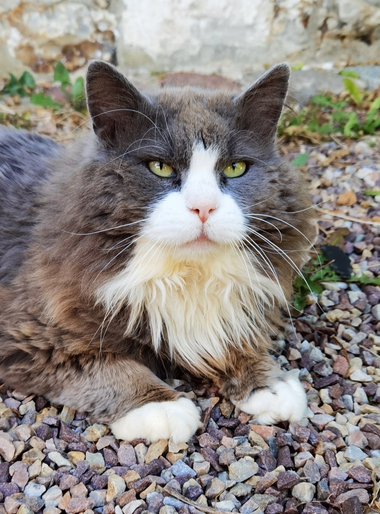 His name is Scratch and some months ago this beautiful cat has chosen to live in our garden with Mystère and Night and to eat their food. We know nothing about him except that he should be about 4 years old according to the vet. Scratch is a lovely boy, he loves cuddles with us and he is a gentleman with the other cats. He is now identified, neutered and vaccinated and of course member of our feline family !