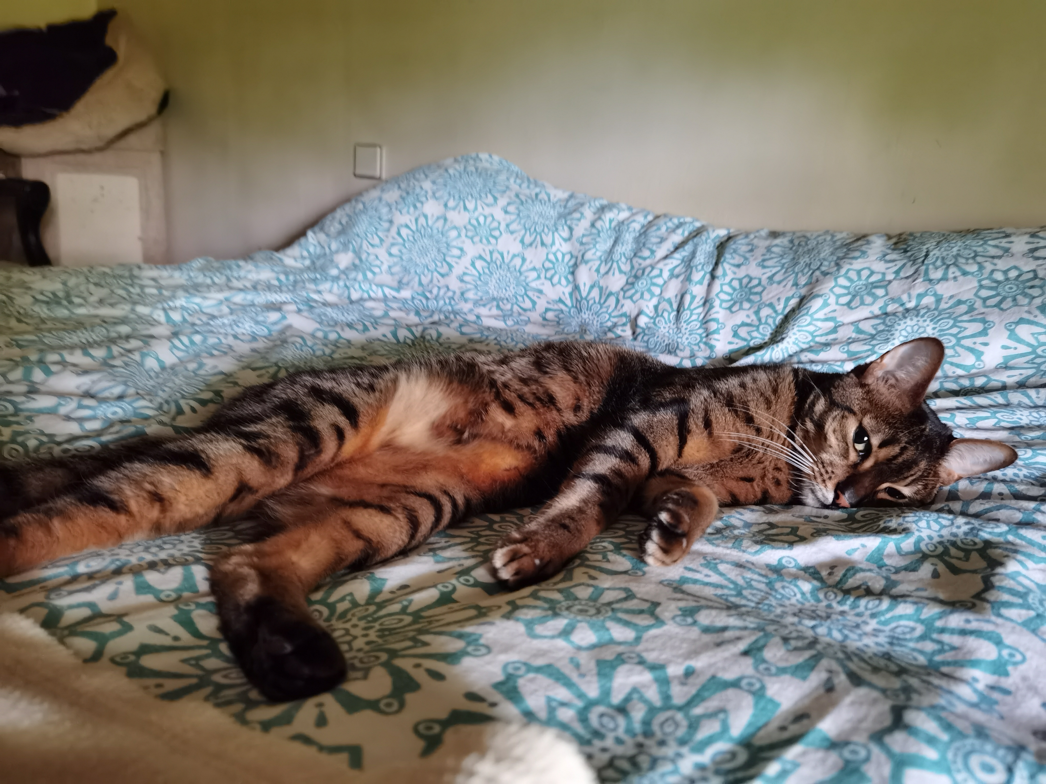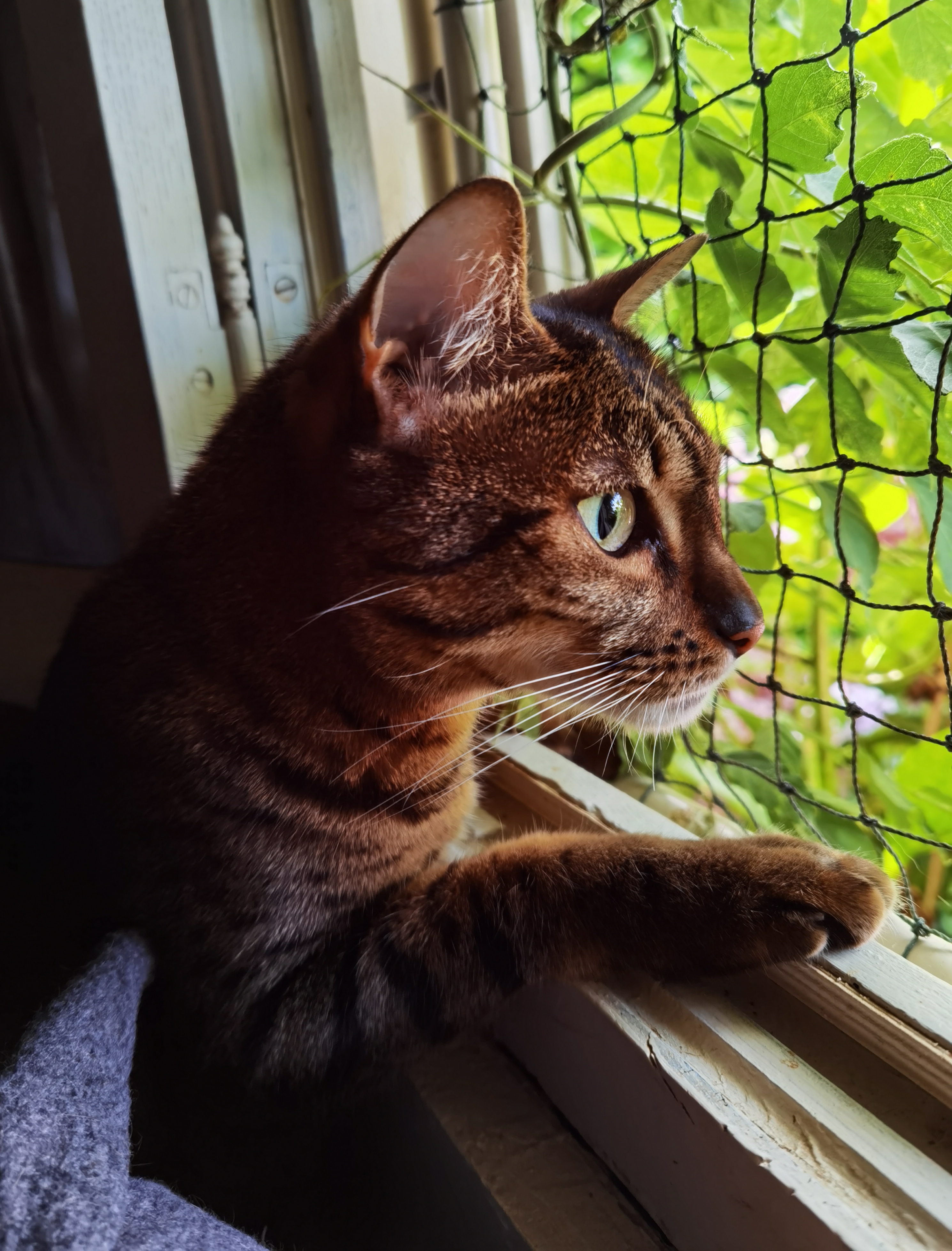 This year again, we are hosting a little holidaymaker for about 15 days. This is Sechem Osmause, the only kitten of the first litter of Amiel-Goshen Netanya and Hotep de la Grande Pyramide. Obviously Osmause did not forget us as 5 minutes after its arrival he came to be cuddled. As you can see, very relax, Osmause, as all Egyptian Maus, like spending time on beds and do gossip at the windows.