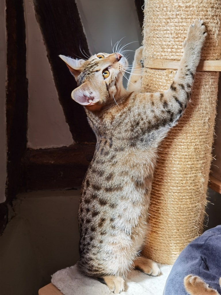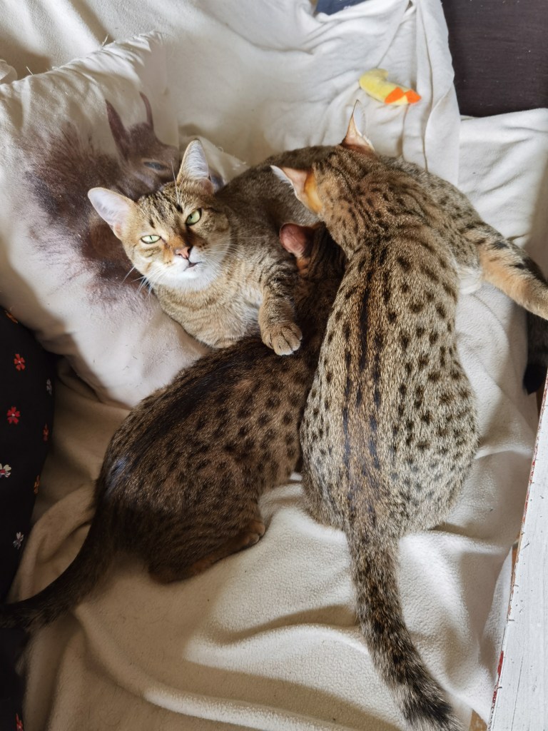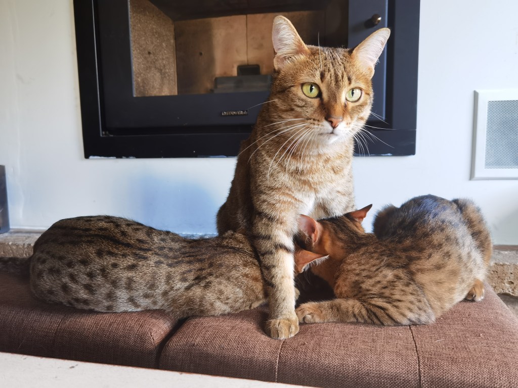 Sechem Saïs, Saqqarah, Sinaï and Socrate Eos have already 6 months today ! Saïs will celebrate the event with her 2 brothers by heart Loukoum and Demosthène. Socrate Eos has already had a double ration of hugs from his human, the asha has a life of dreams in Picardie as you may have read in a previous article. Concerning Saqqarah, awaiting for her adoptant in October, she animates our house with races in company of Sinaï. Even if Saqqarah and Sinaï are becoming young ladies, they continue to suckle regularly their mum Moeris.