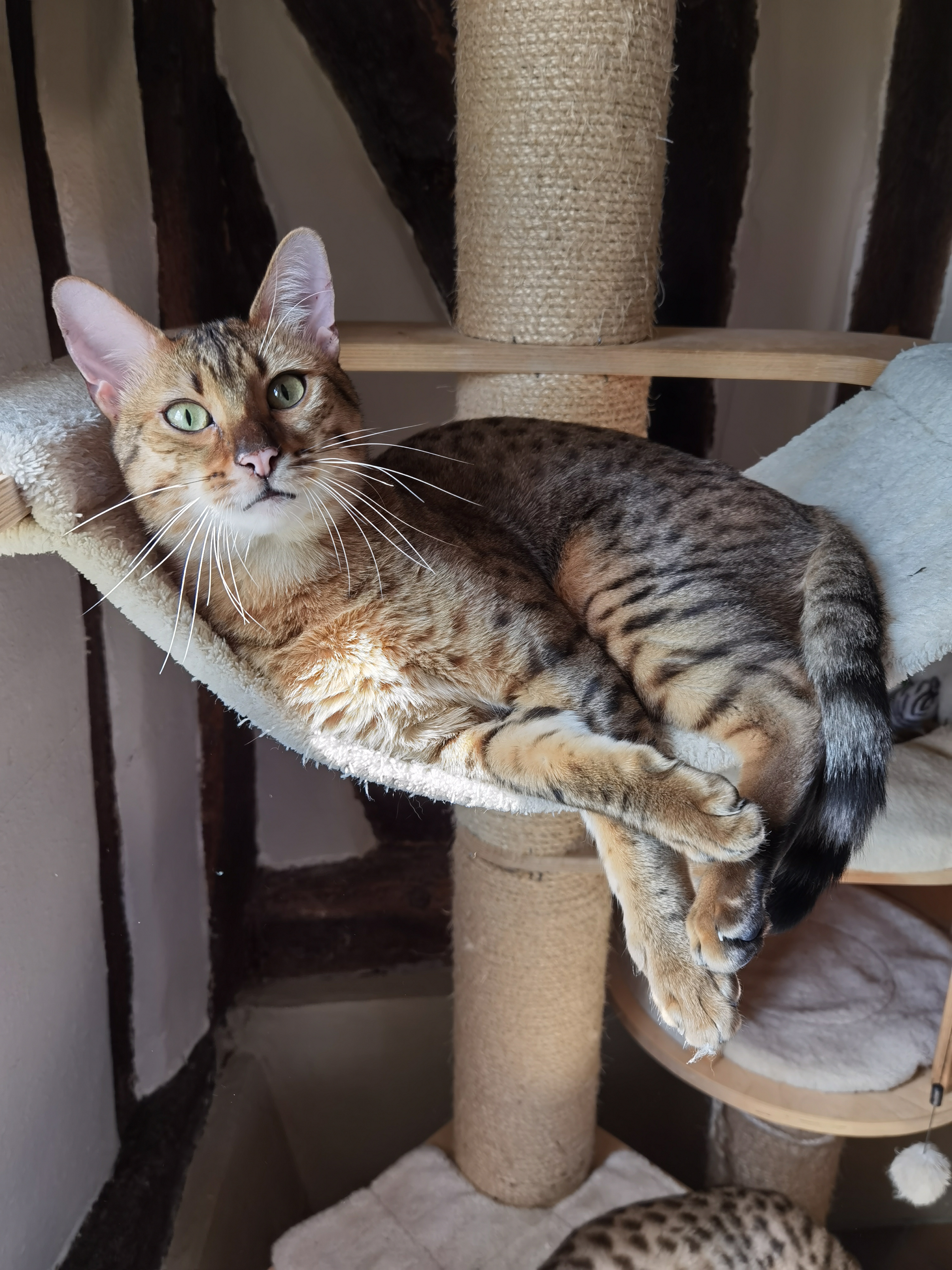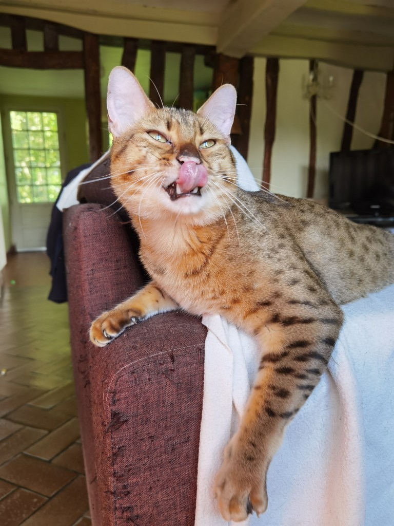 Hotep lost a bit of his jowls but not of his beauty or his colours. We did not want to deprive him of his apartment and mainly his outside run where he loves spending time in his cat tree.