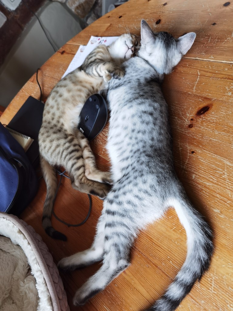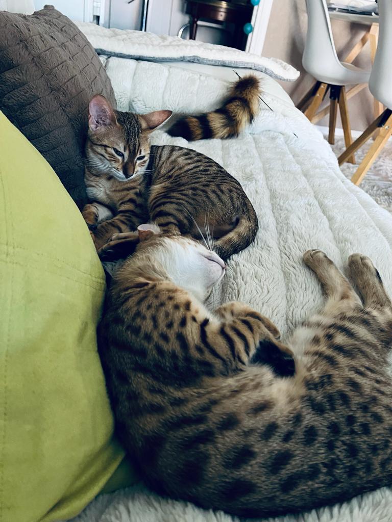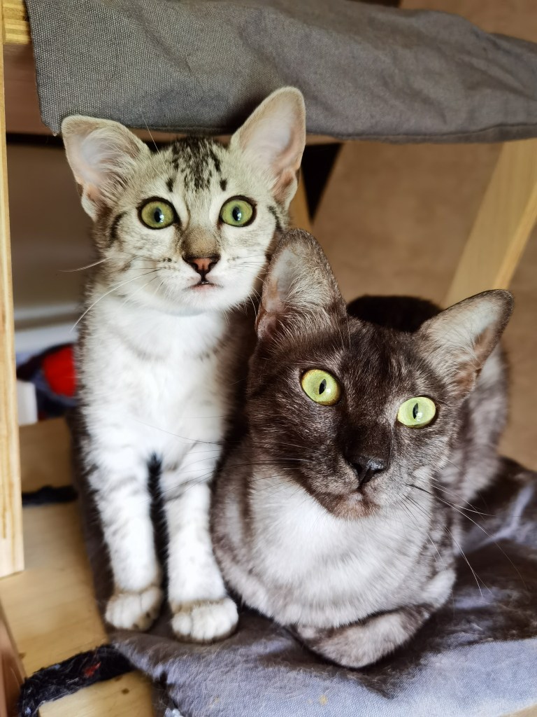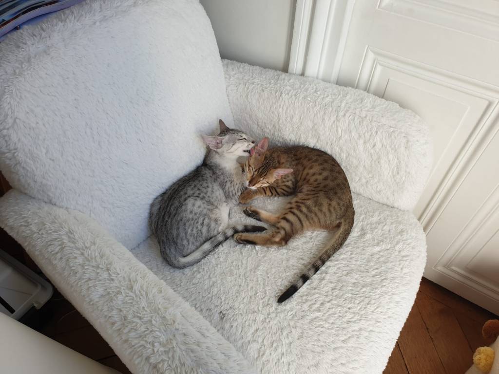 Samedi dernier Sechem Thalia (Mau Egyptien silver) et Topaze (Mau Egyptien bronze) ont rejoint leur famille pour la vie, elles ont la chance de partir ensemble chez des adoptants très attentionnés. Dès leur arrivée, elles se sont senties à l’aise et ont colonisé leur nouvel environnement avec enthousiasme. Un merci tout particulier à Héloïse de prendre soin de nos 2 princesses et pour les adorables photos.