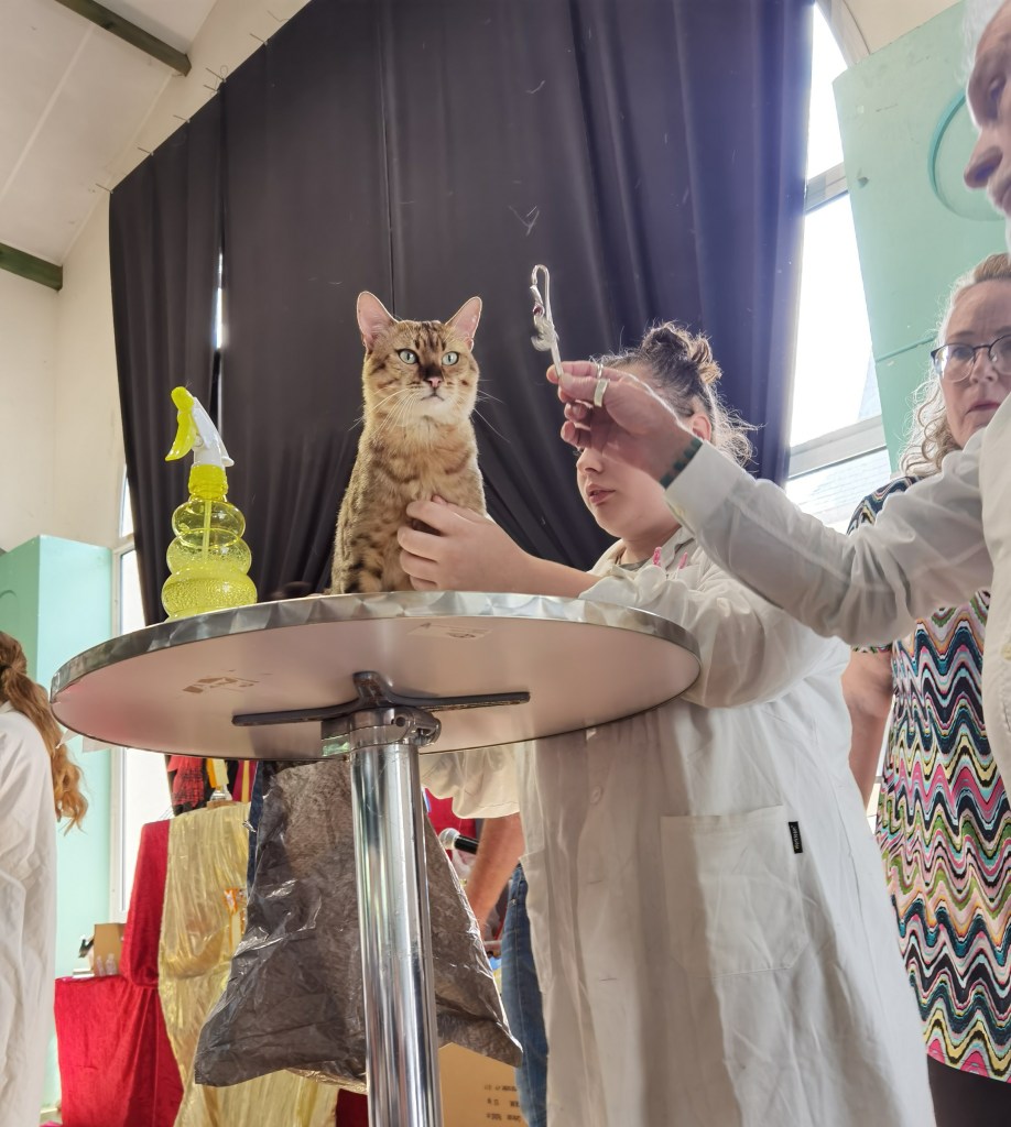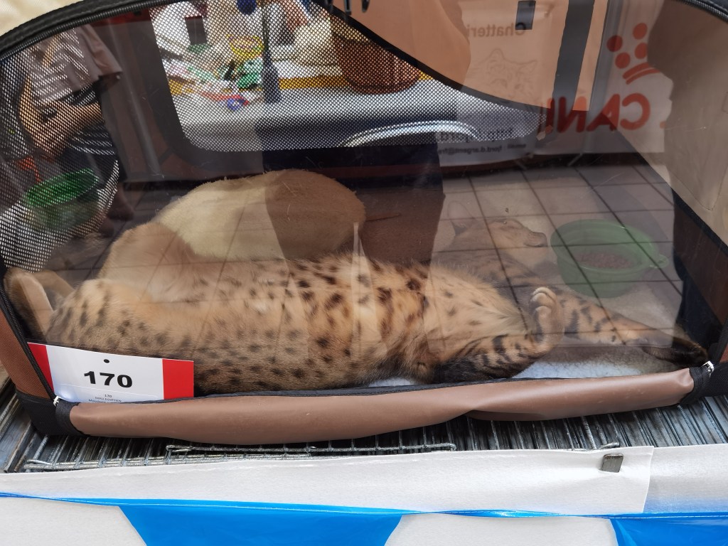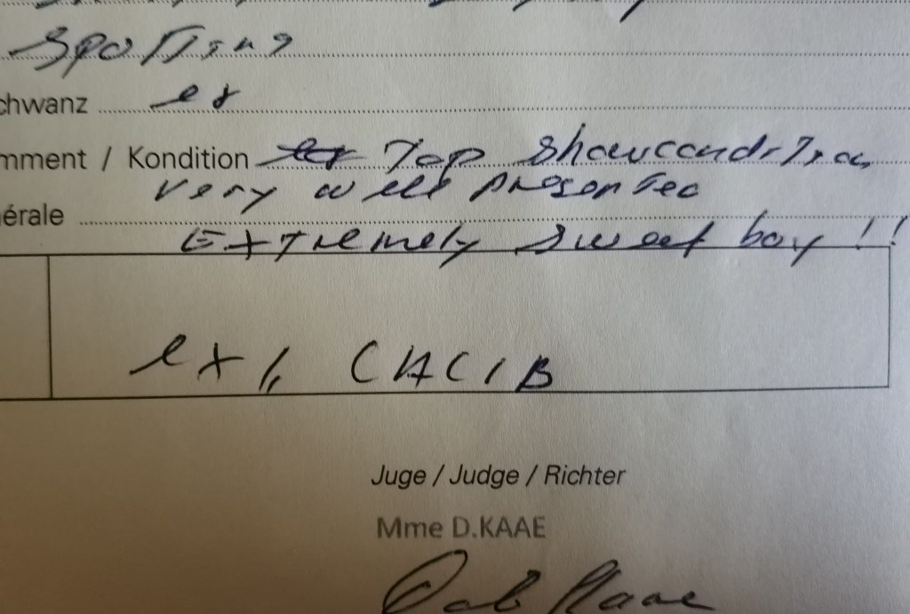 Contrat rempli pour Sechem Pop-Corn qui est devenu Champion International FIFE hier, avec en prime une nomination au Best in Show. Seul Mau Egyptien bronze de l’exposition, Pop-Corn a remporté un vif succès auprès des visiteurs impressionnés par son gabarit, sa couleur, son spotting et ses positions plutôt cool. C’est vrai qu’il était détendu notre Pop-Corn, il a fait un numéro de charme au juge qui lui a valu un « extremely sweet boy » sur son carton de jugement. Bravo Pop-Corn !