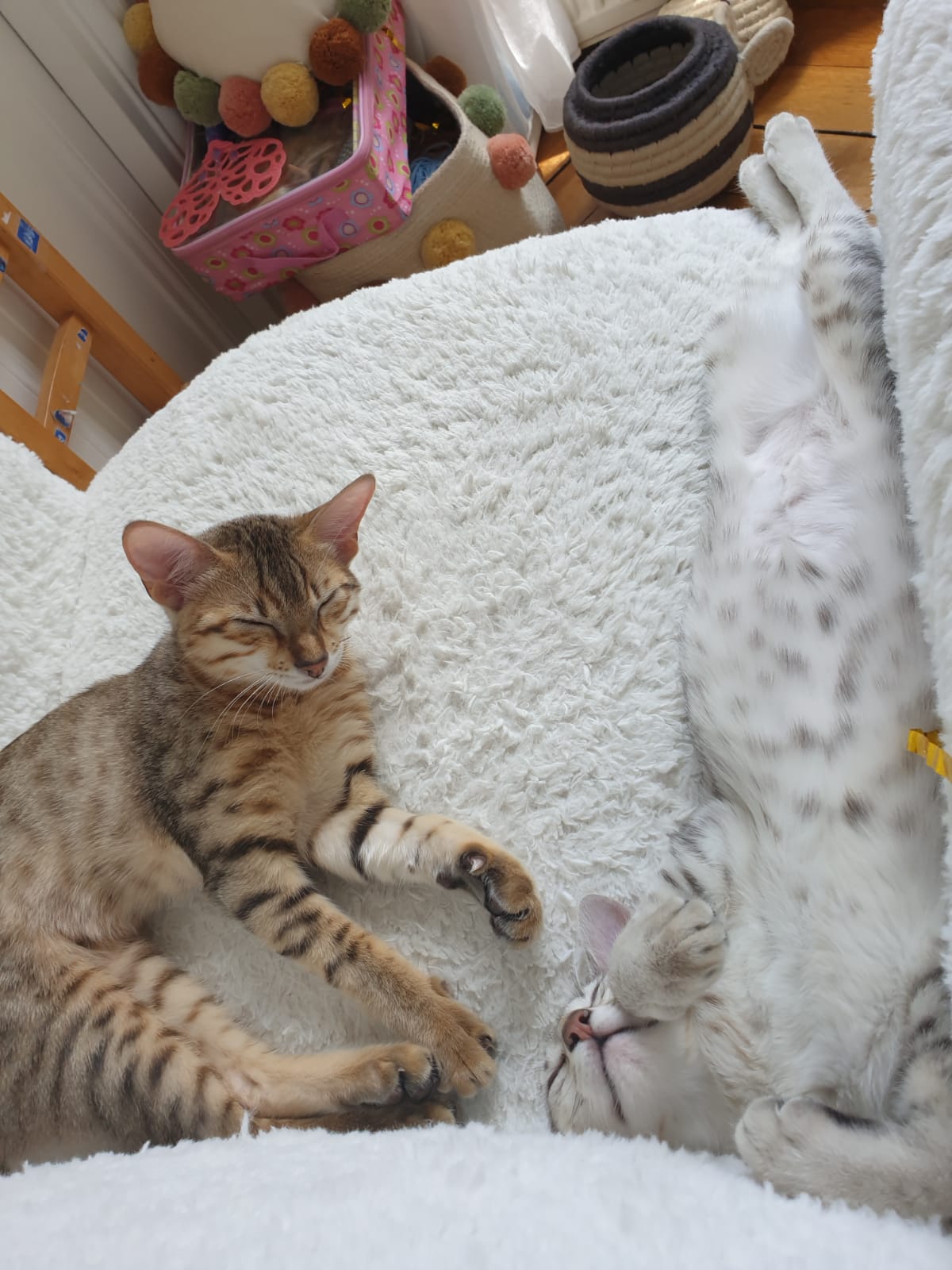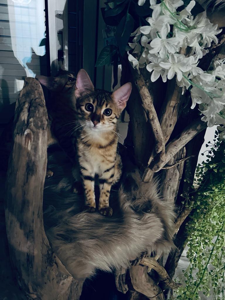 Cela fait presque 2 mois que Amber (Eternal Spring The Girl is On Fire) nous a rejoint. Après une période de quarantaine, la jolie demoiselle a pu intégrer la maison et faire connaissance en douceur avec sa nouvelle famille féline. Après quelques jours de grognements, Amber a su parfaitement trouver sa place sur le canapé, les coussins ou au milieu des chatons.