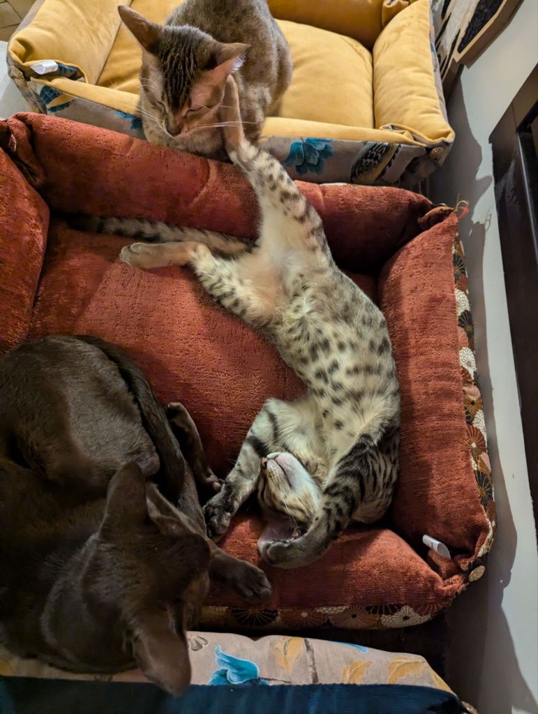 Hier c’était à Zag de rejoindre sa famille pour la vie. Le plus touchant des cadeaux nous a été offert pour son départ, je vous laisse le découvrir dans les photos. Notre petit Mau Égyptien bronze a tout de suite trouvé ses marques, moins de 2h après son arrivée il faisait du charme à ses nouveaux esclaves. Nous savons qu’il sera très heureux et que nous aurons des nouvelles très régulièrement. Belle et longue vie petit bonhomme !