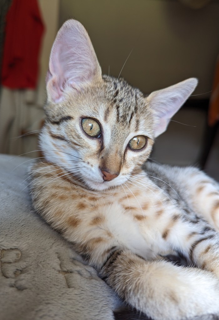 Nous sommes ravis de vous annoncer que Sechem Update (ex Unforgettable) issue du mariage Eternal Spring The Girl Is On Fire Aka Amber et Sechem Pop-Corn, rejoindra la chatterie « La Triade Loupiots ». Un grand merci à Nathalie Gueneau et son mari d’accueillir notre jolie princesse. Nul doute qu’elle sera choyée comme une reine et que nous aurons de multiples occasions de la revoir.