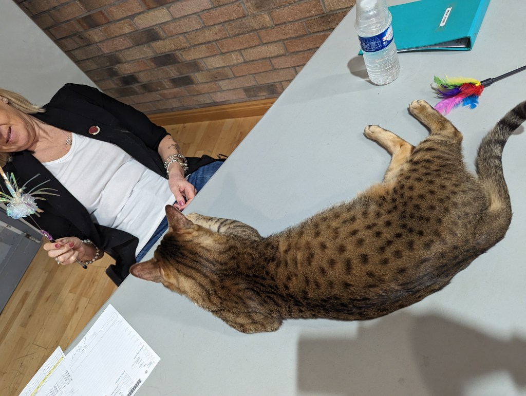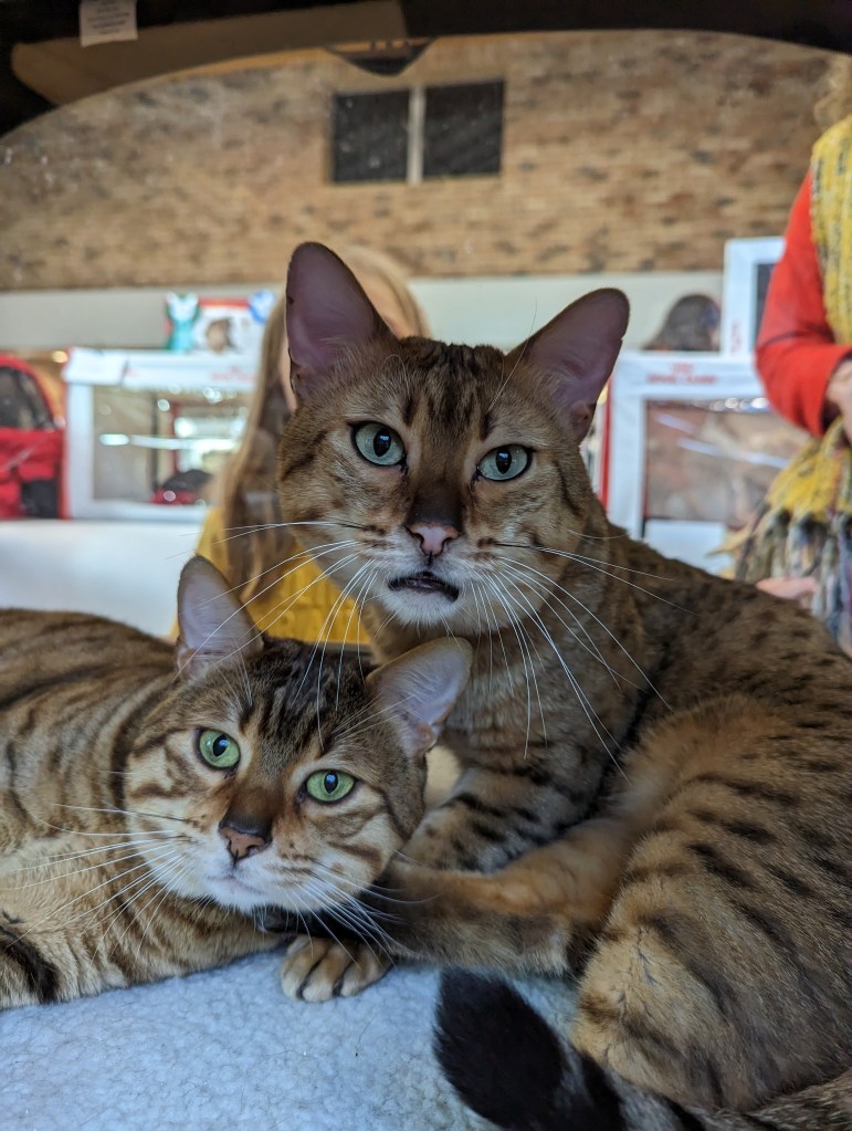 Nous voici de retour de l’exposition de Beuvry, une exposition conviviale et très bien organisée par le Cat Club de Paris et des Provinces Françaises que nous remercions. Les juges ont apprécié de voir des Maus Egyptiens de la couleur bronze, Pop-Corn tout particulièrement a fait sensation avec son gabarit, son type, son spotting et sa couleur. Côté résultats notre Rocky (AstartesMau Rockefeller) a obtenu ses 2 premiers CACIB, (Sechem) Pop-Corn a eu 2 CAGCIB et, cerise sur le gâteau, il a été nominé au Best in Show les 2 jours. Nous sommes fiers de nos 2 garçons qui se sont bien comportés en jugement et qui ont amusé le public avec leur bel entente. Prochaine exposition : Pontorson au pied du Mont Saint Michel !